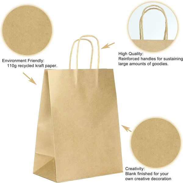 Brown paper bags with handles are one of the most popular party supplies you can use at home, school, office and even church. Whether you’re celebrating New Year’s Eve, Bastille Day, or just going out for a quiet dinner with friends these paper bags are handy for all sorts of occasions. These brown kraft wrapping paper bags feature 80 pieces that measure 10.5″x4.25″x8″. The best thing about our Christmas gift wrapping bags is that they are Eco-friendly, meaning less waste in our landfills. You can use them over and over again, making every gift-giving experience something memorable