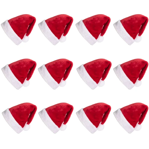 β’ Our Santa Claus Hat includes 12-pack Christmas Santa Hats with classic plain red color with white trim and pom-pom design.