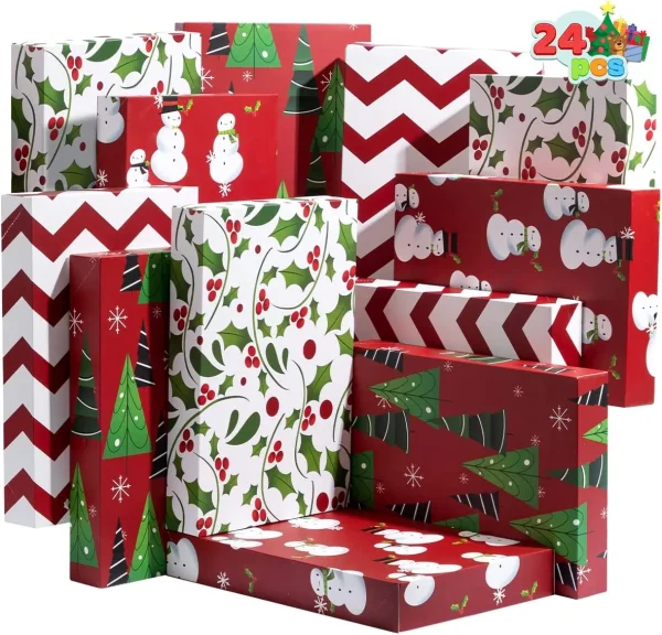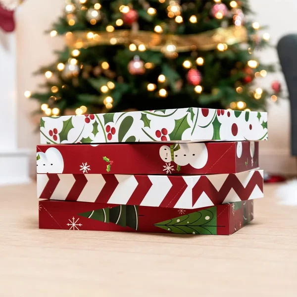 The Christmas shirt boxes are a perfect way to store wrapped presents or wrap your own gift. No need to search for wrapping paper, ribbon, or tape to wrap your gift. It is an all-in-one solution. Make your gifts stand out with our shirt boxes. This set includes 12 boxes, 4 different designs, and each measures 14″ x 9.5″ x 2″. The lids that snap shut give your gift a unique finish that anyone would love! Perfect for Christmas, birthdays, and other occasions such as housewarmings and anniversaries!