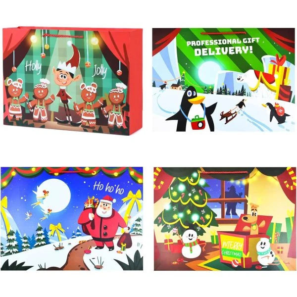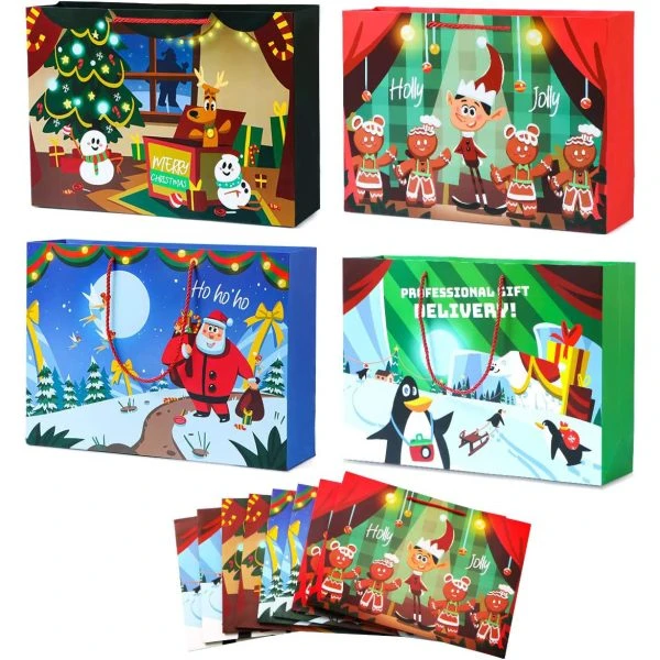 • These Christmas Gift Bags are a beautiful and practical solution for carrying all your Christmas candy, ornaments, and holiday party favor this season. Perfect gift wrapper for events like Christmas parties, family gatherings, gift stuffing, and gift wrapping for Christmas parties during winter holidays and more! Use it to pack your gift which can enhance the Christmas festival atmosphere. Exquisite design bags can catch others’ eyes among so many gifts.
