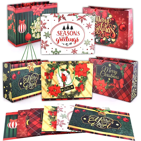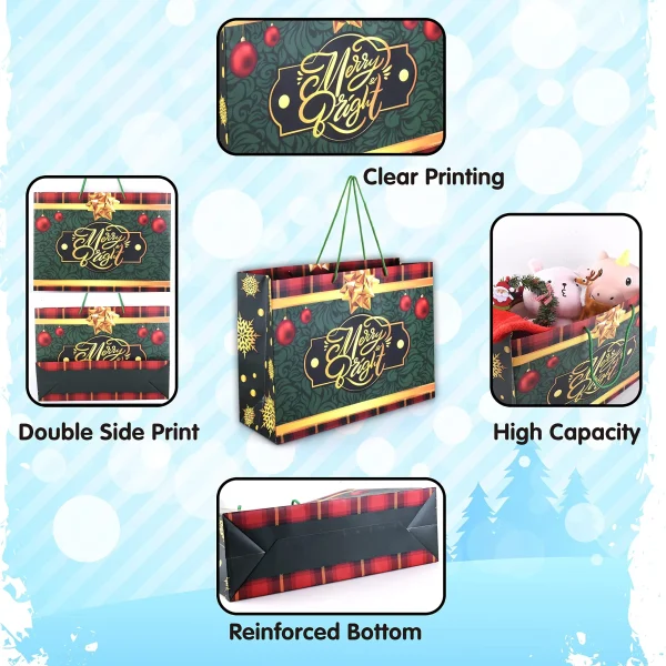 Our large Christmas gift bags are a beautiful and practical solution for carrying all your Christmas candy, ornaments, and holiday party favor this season. Perfect gift wrapper for events like Christmas parties, family gatherings, gift stuffing, and gift wrapping for Christmas parties during winter holidays and more! Use it to pack your gift which can enhance the Christmas festival atmosphere. Exquisite design bags can catch others’ eyes among so many gifts.
