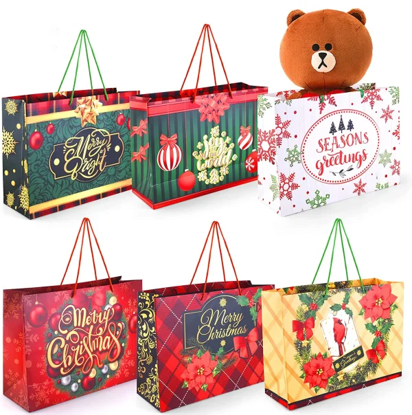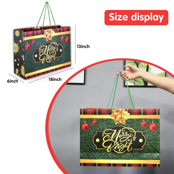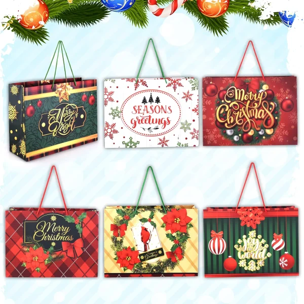 • Large Christmas goodie bags include 12 pcs vintage gift bags which come with 6 Christmas vintage designs. Each gift bag measures 13 x 18 x 6 inches.