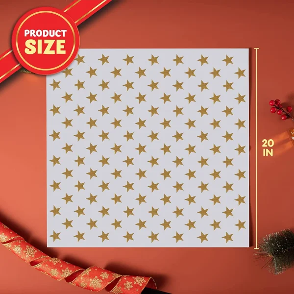 β’ Tissue paper Christmas includes 150 pieces of gift paper in 6 different patterns/ golden zigzag, golden stars, golden dots, golden striped, metallic gold solid, and silver polka dot. Each Gift Tissue Toppers is 20β³ x 20β³ inches.
