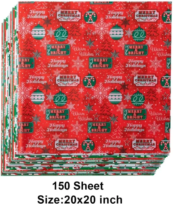 • Our Christmas Tissue Paper Bulk for Gift Bags are Perfect for creating crafts such as tissue paper garland, flowers, or paper balls. This Tissue Wrapping Paper makes your creative work eye-catching and impressive.