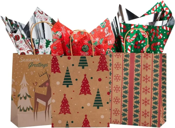 Our tissue paper Christmas is made from the highest quality raw materials, including tissue paper and non-toxic craft glue, and non-BPA. This product will make your creative work eye-catching and impressive. Christmas decorating is one of the most enjoyable parts of the holiday season. It’s also one of the easiest ways to get into the holiday spirit! These Christmas Tissue Wrap Rolls are perfect for wrapping gifts, creating paper balls, or making tissue paper garlands. It comes in 15 red, green, and silver designs. The best thing about this Christmas tissue paper bulk for gift bags is that it is made with 100% recycled material so it is safe for use around children and pets!