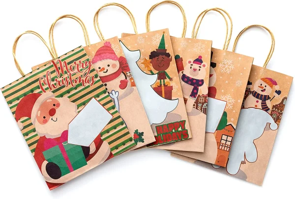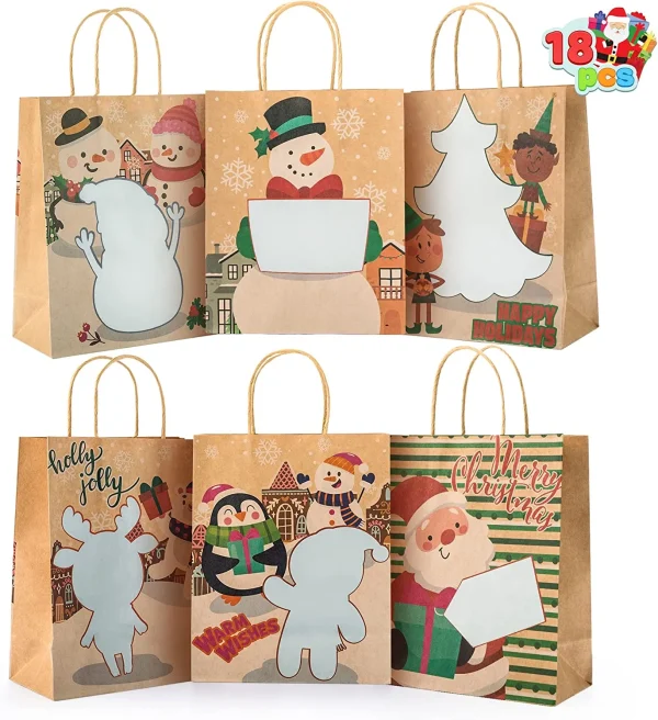 • Kraft paper Christmas gift bags include 18 Pcs DIY Christmas Character Kraft Bags with 6 Designs. These gift bags measure 9 x 7 x 3 inches.