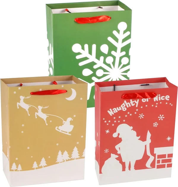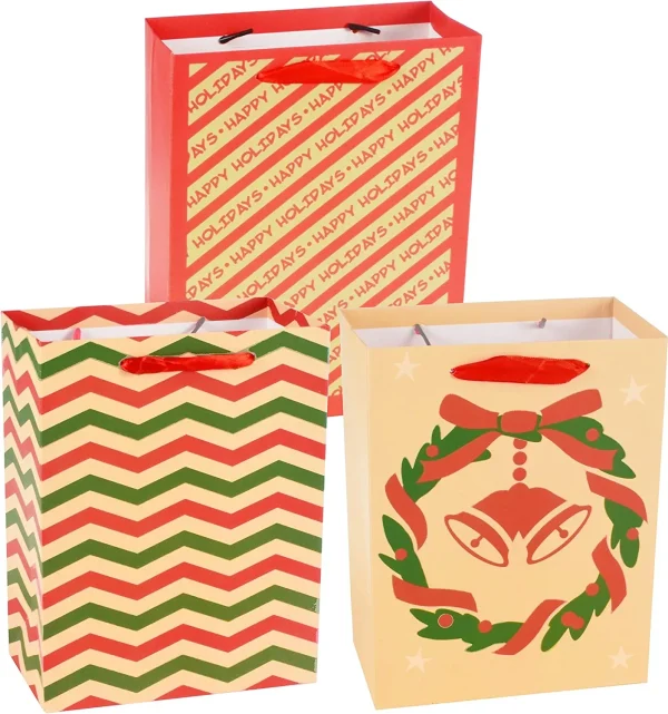 These gift bags are perfect for any occasion. The small bags are great for small gifts and stocking stuffers, while the larger bags can hold bigger items like towels, books, and bottles of wine. These bags come in different designs and colors that are sure to match any type of event. With this large collection, you’ll have something to go with every occasion! The Holiday Christmas Bags is a great set of 18 Assorted Sizes Xmas Creamy Kraft Style Bags in 12 Different Unique Designs. It is made of Thick and Sturdy Cardstock Paper with Ribbon Handles. Every bag has Extra Support for a Cardboard Base.