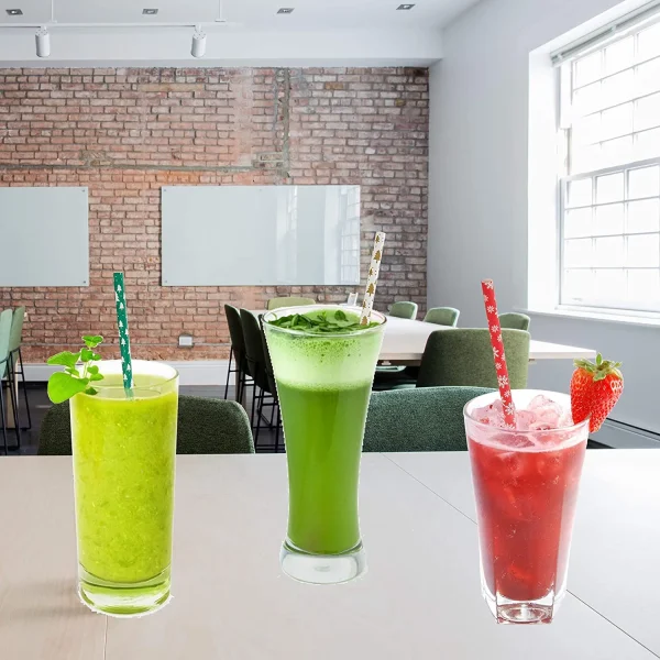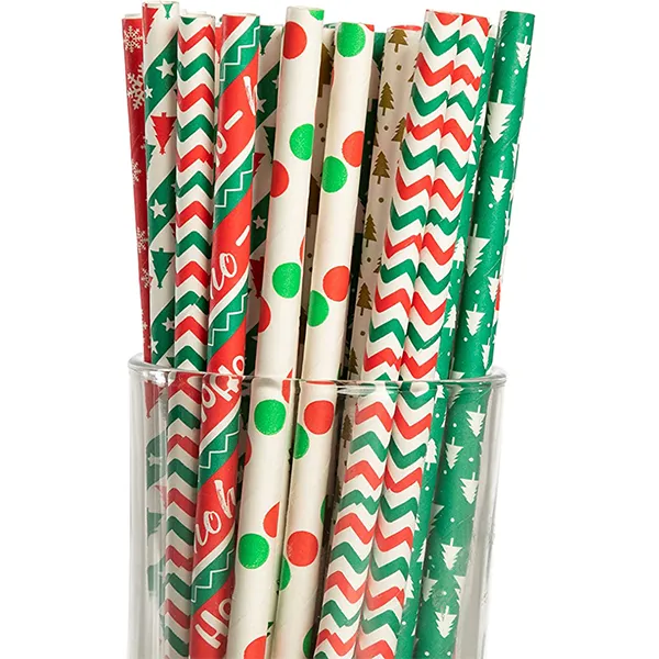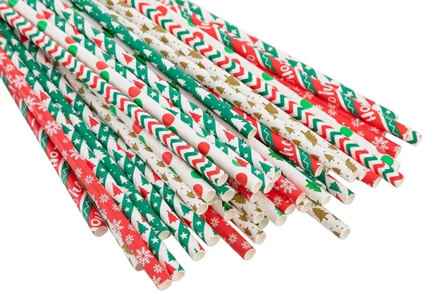 โข Christmas paper drinking straws include 8 different Christmas patterns of 25 paper straws each with 2 foil designs.