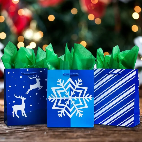 Blue paper gift bags are the perfect way to wrap and present a gift! Our quality bags have an attractive design and are made from repurposed paper that’s also eco-friendly. The bags come in 2 sizes and are great for decorations or gifts, or stocking stuffers the possibilities are endless! A stylish way to gift wrap and customize your Christmas presents and parties. These paper bags are made of high-quality and eco-friendly materials, making them reusable and sturdy enough to last. Made of your choice of colors, our paper gift bags are perfect for Christmas giving, special promotions, and more. Each bag is made from 100% sustainable materials and folds flat for easy storage. Use them as party favors, gift boxes, or stocking stuffers!