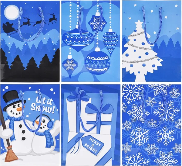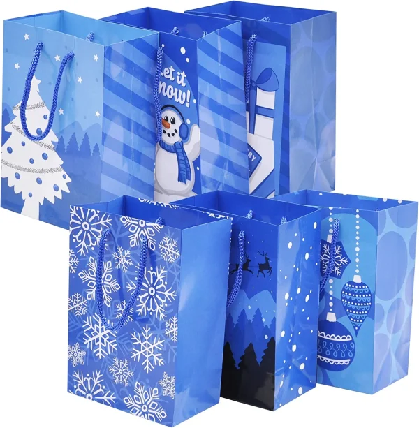 โข Blue Christmas gift bags include 20 pieces of paper gift bags with 6 designs measuring 4.25โณw x 6โณ Tx2.53โณ.