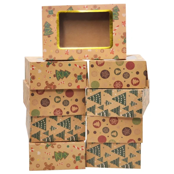 • Christmas cookie boxes with window include 24 boxes with foil with 3 different designs. Size: 8.75″ x 5.6″ x 2.75″