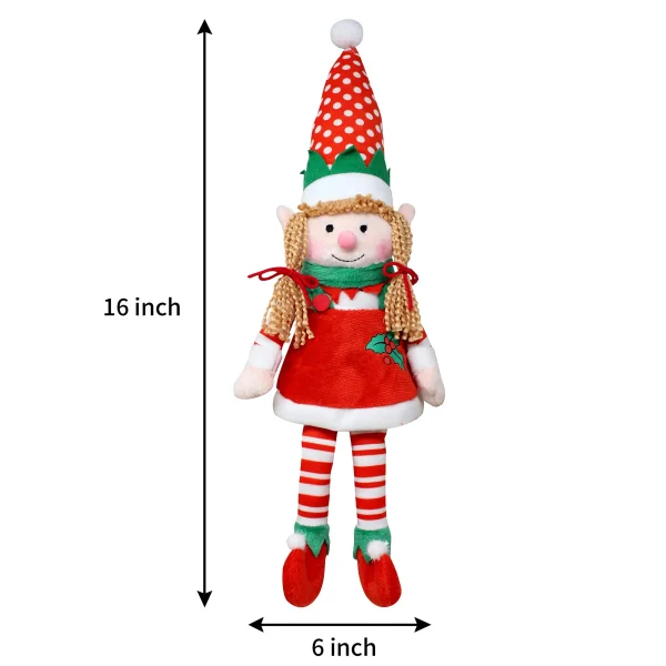 • This adorable elf plush sits and watches over your home at Christmas time. They will definitely tell Santa whether you’ve been Naughty or nice! This Elf Doll Holiday Decor is suitable as a gift or a decoration.