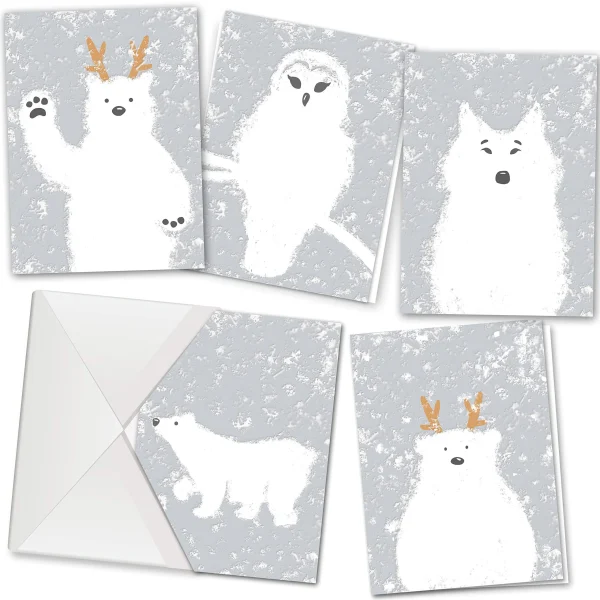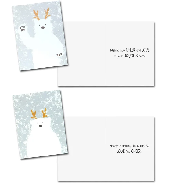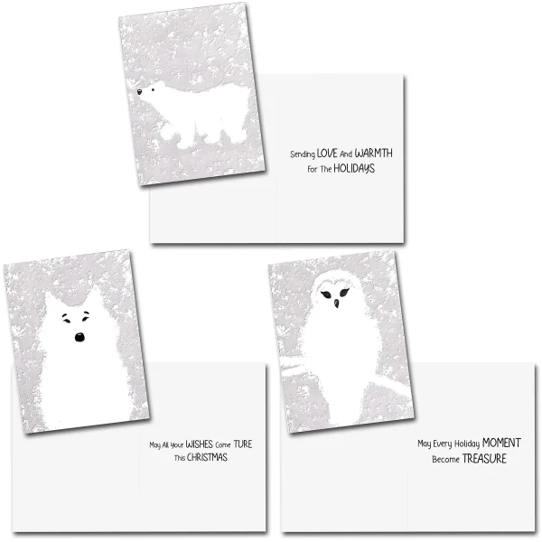 β’ Christmas card greetings include 36 pieces of greeting cards with envelopes (not personalized) for any occasion. It has 5 assorted elegant designs that you can put a note on. Each card is printed with high-quality card stock featuring elegance and extra durability that measures 6.24β³ x 4.62β³ inches.