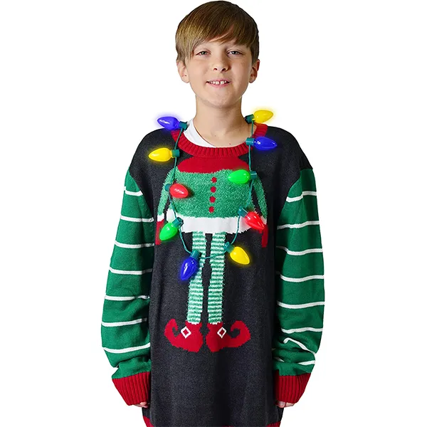 • Christmas light bulb necklace comes with 9 Large 2.5 inches Multicolor LED Light Up Bulbs on a 45 inches Perimeter Necklace.