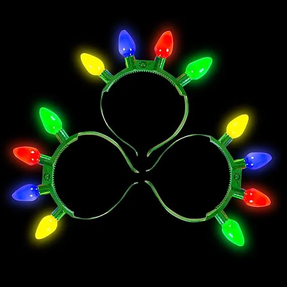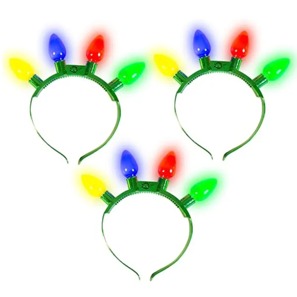 • 3 Packs Christmas Flashing Christmas Light Headband, Each Headband Includes 4 Large 2.5 inches of Multicolor LED Light Up Bulbs.