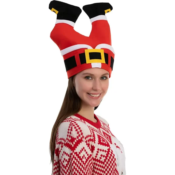 β’ Christmas Santa pants hats include Upside Down Pants Santa w/ little boots and belt buckles. The Head circumference: is 24β³, height: is 12β³, and one size fits adults, teenagers, and kids.