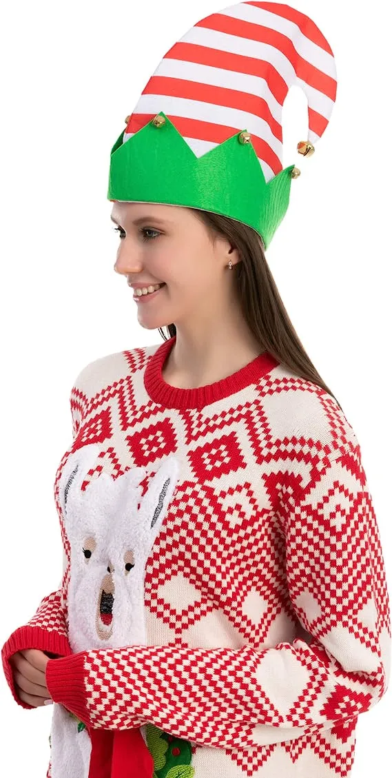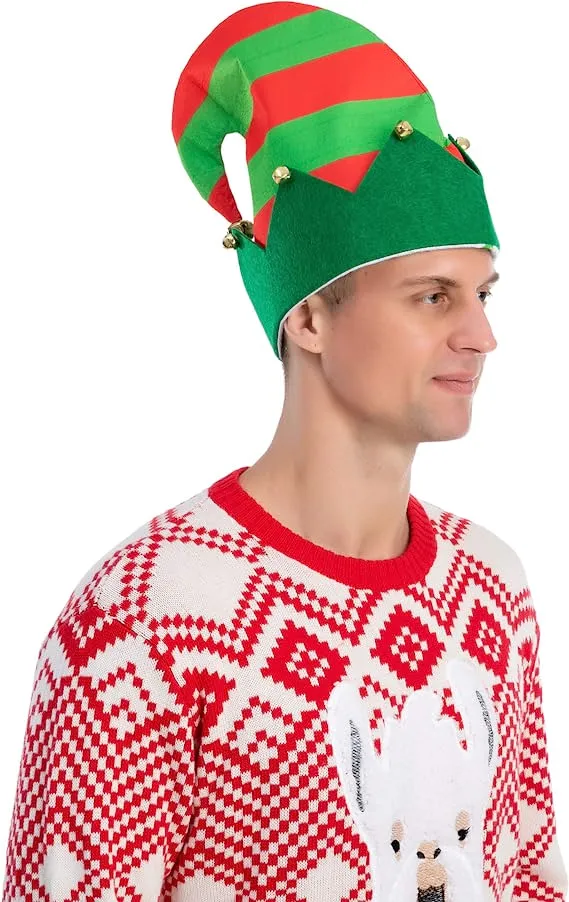 • Christmas elf hats includes 3 Packs of Christmas Elf Felt Hat including three different designs, red & white stripes, red & green stripes, and pure green and red elf hat. This felt elf hat is embellished with medium jingle bells to make it classy. This is made of felt material with superior quality soft cloths so it would not cause any discomfort while wearing.