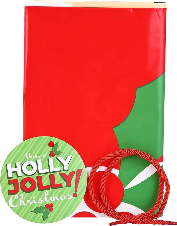β’ An adorable way to βwrapβ under-the-tree gifts, or use them as Xmas decorations. The huge sack can be filled with anything from candy to suitcases. A strong cord drawstring on top to tighten the sack up, easy to open and close, and convenient to carry.