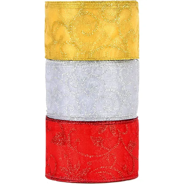 • Thick Christmas ribbon includes 3 Roll of Ribbons with Silver, Red, and Golden Metallic Glitter Respectively.