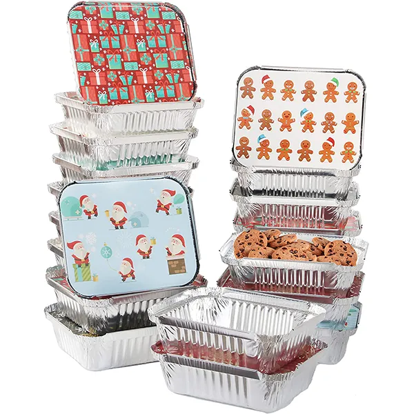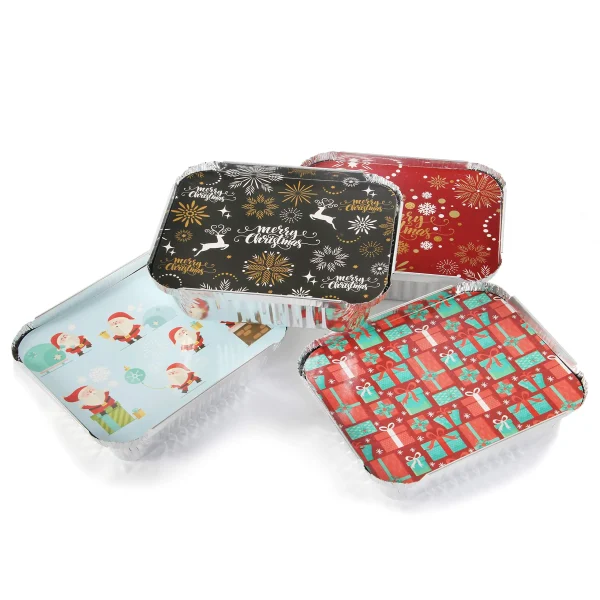 • Christmas food foil containers include 40 pieces of foil containers measuring 7″x5.5″x2″ with lids. The foil containers come with beautiful Christmas-themed lids in 8 different designs. The lids have festive designs that everyone would love!