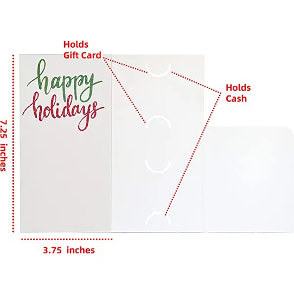 โข If youโre unsure what Christmas gifts to buy, or you simply know theyโd prefer the freedom of choosing their own gift, gift cards or cash are the most simple and Ideal gifts. However, you still want to make sure that the gift shows the care and thought you put into it. Thatโs why we created these perfect Holographic Money/Gift Card Holders to make this simple gift perfect and festive for this occasion.