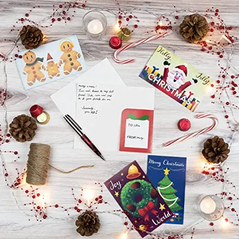 - Our Christmas colored print Gift Card includes 48 cardholders with colored prints like Christmas features, such as elf, Christmas tree, Christmas lights, Santa, gingerbread man, and snowball.