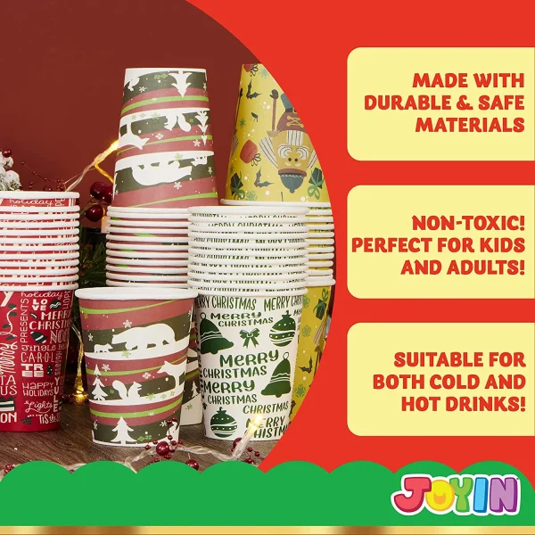 • Our Christmas cups are made of food-grade paper material, safe and environmentally friendly; the excellent material makes them not easy to damage; and they are suitable for cold or hot water.