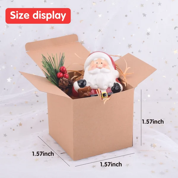 • Our Kraft Paper Gift Box with Lids for Gifts includes 50 pcs of Brown Kraft Boxes with twines and Crinkle Cut Tissue Paper Shred Filler for Packing. Each box measures 4 x4 x4 inches.
