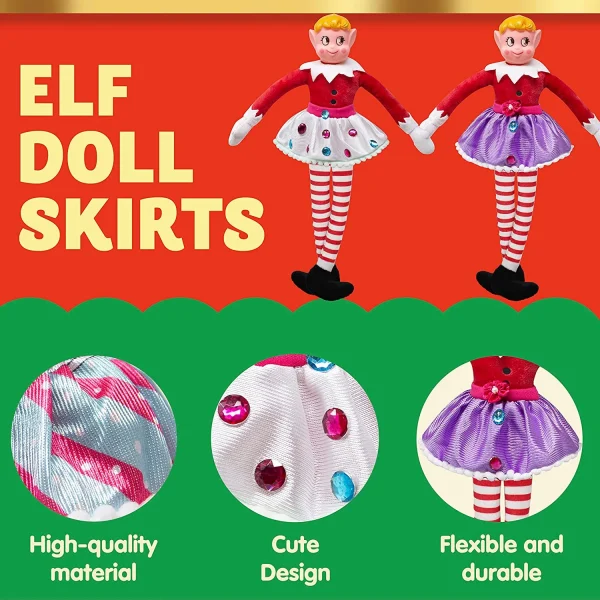 - SUPER VALUE PACK. Our Christmas Girl Elf Doll Clothes elf plush doll set includes 5 sets of Christmas Girl Elf Doll skirts. (Elf Dolls Not Included)
