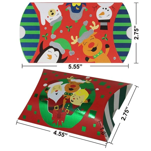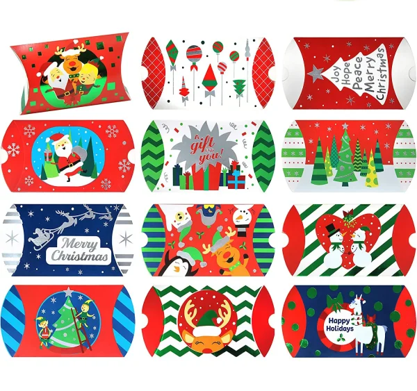 • Our Paper christmas gift card pillow boxes Pack comes with 60 pieces of boxes that 12 unique designs. Each box measures 4.5”x 1.0”x 2.75’’. Perfect for holding little gift goodies that you wish to give out on any special occasions!