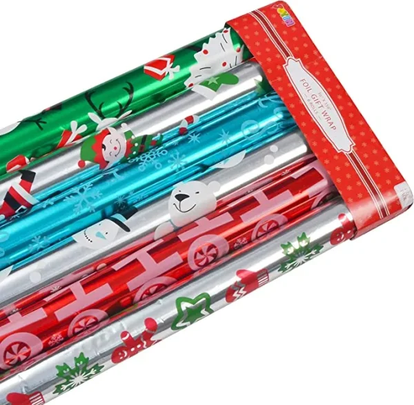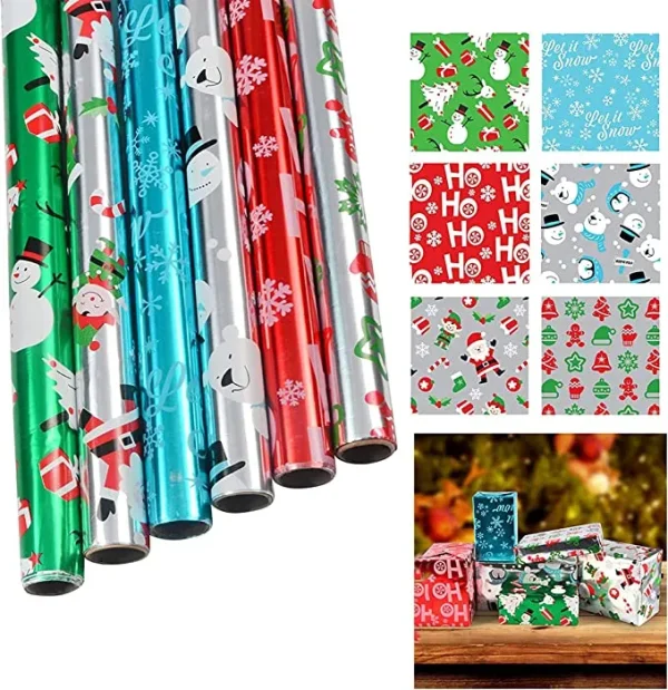 โข Christmas foil wrapping paper includes 6 Rolls of Wrapping Paper with Foil Style.