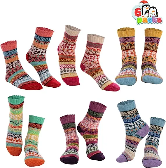 - Soft 6 pairs women wool socks thick knit vintage winter warm cozy crew socks gifts include 6 different colors.