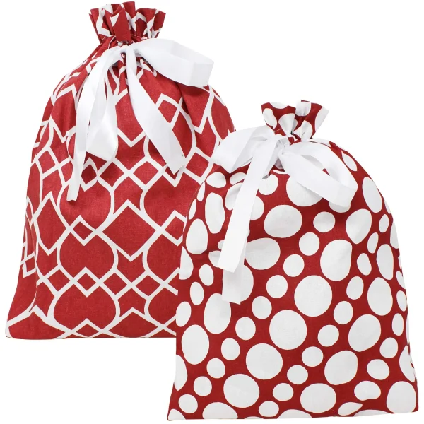 β’ Fabric gift bag includes 6 pieces with 3 different sizes: 2 pieces 16β x 20β inches, 2 pieces 12β x 16β inches, and 2 pieces 8β x 10β inches.