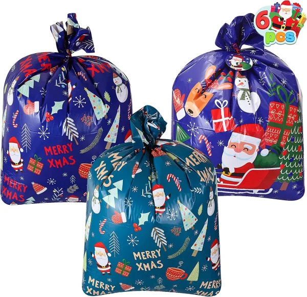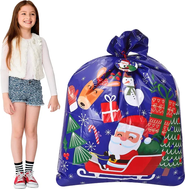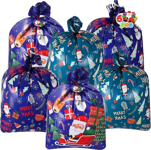 - Our holiday gift bags include 6 pieces of Christmas giant gift colors vary bags that measure 36 x 44 inches.