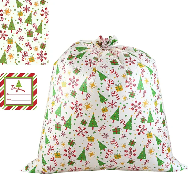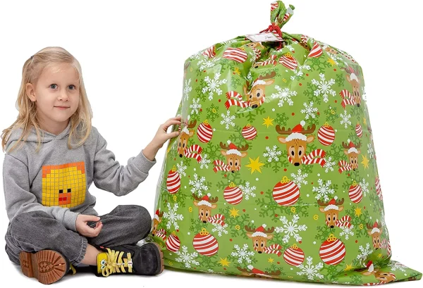 โข Eye-catching and festive Christmas design will create an exciting buzz around the house for friends & family. Convenient to use and customize with gift tag and string! Perfect for bulk stuffing, huge sack decor or Xmas present decorations. Make wrapping presents super easy with no mess!