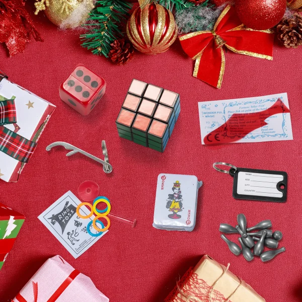 • Gifts include Playing Cards, Ring Toss, 10 PCS Bowling set, Fortune Telling Fish, Keyring with label in black, Bottle Opener, Magic Cube & Red Dice. Picking this Christmas Party Table Favors will make your dinner table more elevated than your standard dinner party.