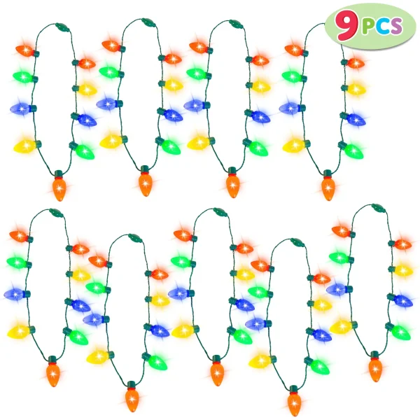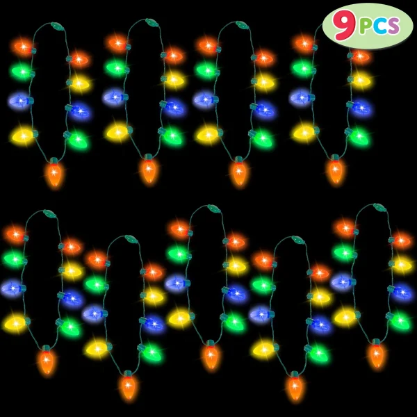โข Light up holiday necklace includes 9 pieces of wearable light-up necklaces. Each piece has 9 bulbs with 6 different light modes.