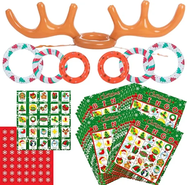 • Reindeer antler toss game come along with 2 large rings, 2 medium rings, and 2 small rings, 2 sets of the bingo game