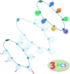 3Pcs Disco Candy Snowflake Light Up Bulb Necklace