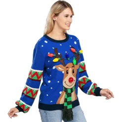 Womens LED Reindeer Light Up Ugly Christmas Sweater