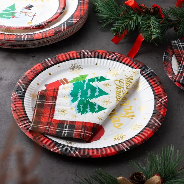 Our Christmas paper plates are a must-have for the holiday season. The plates come in two different sizes of dinner plates, while the napkins are just the right size to wipe your mouth. Enjoy Thanksgiving and Christmas without any problems with this set! Christmas buffalo plaid paper plates and napkins are perfect for any Christmas or holiday event, or anytime the mood strikes.