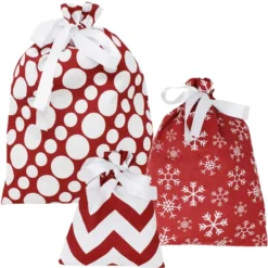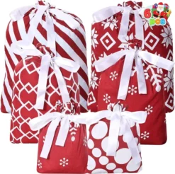 6pcs Elegant Red Christmas Fabric Gift Bags