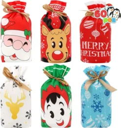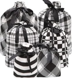 6pcs Drawstring Black Christmas Fabric Gift Bags