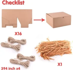 16pcs Christmas Kraft Gift Boxes With Grass Twines