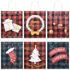 24pcs Christmas Buffalo Plaid Gift Bags With Handles