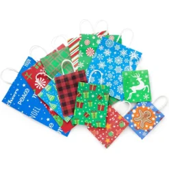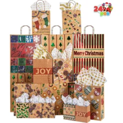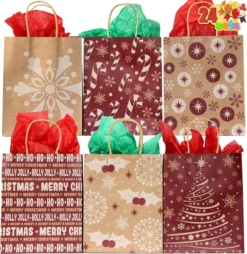 24pcs Christmas Assorted Prints Kraft Gift Bags