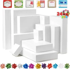 24pcs Assorted White Paper Christmas Shirt Gift Box Set