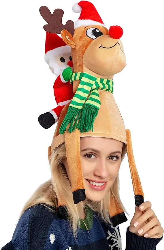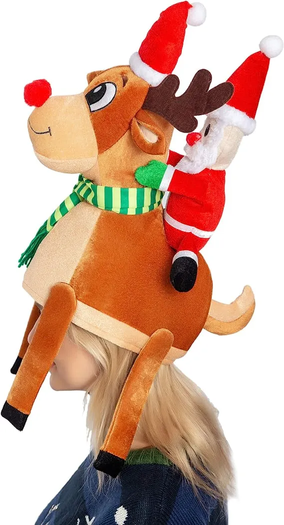 This Santa riding a reindeer Christmas hat is adorable and entertaining to wear! The hat is widely applicable as a costume or worn for the holidays, and ugly sweater party favors, and can also be used as a Christmas tree decoration, adding a festive atmosphere to your special occasions. Hand washing is recommended to keep the color bright and to ensure that the hat can be worn for many seasons in the future. This a great gift idea for children, adults, or even pets!