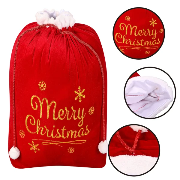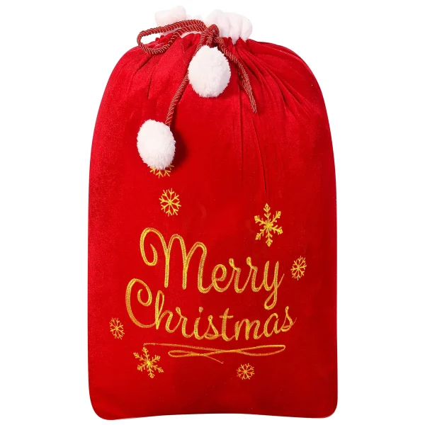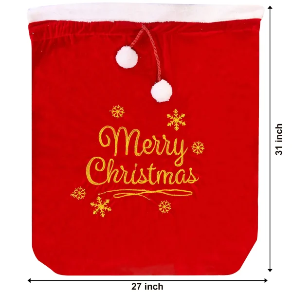 • Large red Santa bag includes a large bag that measures 31”x27” inch. The Christmas bag is large enough to hold a lot of gifts, candies, toys, etc.