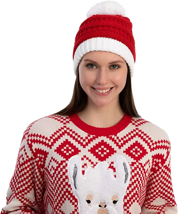 โข Christmas winter hat features red and white wonderful colors for Men and Women. The Winter Beanie Santa Hat is one size fits most hat with 23 inches measurement around. This is stretchable knitted cable caps can be hand washed with cool water, mild soap, and line dry.